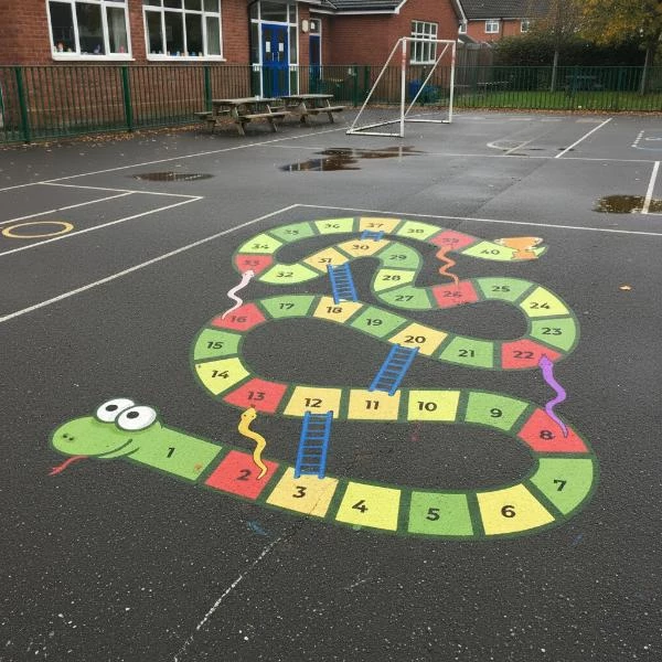 Snakes and Ladders playground markings - A large-scale board game that teaches turn-taking and number progression. It encourages patience, fair play and strategic thinking while keeping children active.